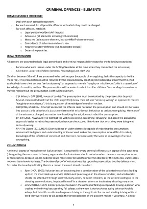 Notes covering the ENTIRE LAWS1021 final exam. Received a High Distinction with a final mark of 86 for this course. Covers ALL final exam topics including: Effective Criminalisation Theory Normative Criminalisation Theory Discretion The Two Tiers of Justice The Process as Punishment The Adversarial System and the Pre-Trial Process Technocratic Justice Therapeutic Jurisprudence Procedural Justice Elements of a Fair Trial Internationalism and Human Rights Miscarriages of Justice Components of Criminal Offences Types of Criminal Liability Drug Offences Public Order Offences Sentencing