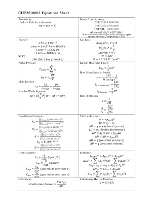 I created this sheet that encompasses and organises all the formulas and functional groups that need to be memorised to succeed in Chemistry 1. The Functional Group page is in the form of a poster that can be printed and hung up in your study space! As no data sheet is provided, a large portion of success in the exam (especially in the multiple choice section) relies entirely on your ability to remember the equations in the lecture slides.