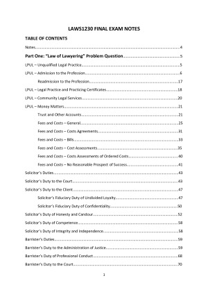 Notes covering the ENTIRE LAWS1230 course, including the final exam. Received a High Distinction with a final mark of 85 for this course.