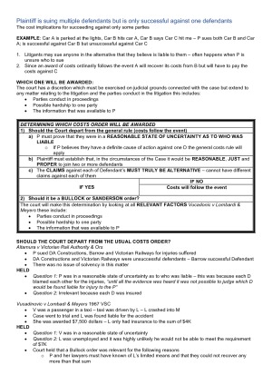 These notes are all I needed to achieve a HD for MLL391 Civil Procedure. They include all relevant legislation (directly extracted and explained), cases and key definitions, infographics to help with understanding, and answer guides. The topics include overarching answer guides and summaries, as well as important detail. They are ready to print off and use throughout the trimester and in the final examination.