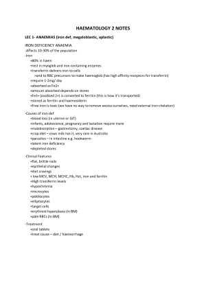Lecture notes & Diagrams for: 1 - Anaemia 2 - Malaria & Bone Marrow Disorders 3/4 - Leukaemia & Lymphoma 5 - Myelodysplastic Syndromes & Myeloproliferative Disorders 6 - Myeloma & Flow Cytometry 7 - Anticoagulants & Coagulations Disorders 8 onwards - Cytogenetics