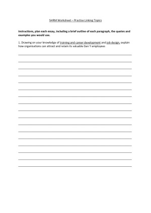 Planning and writing practise questions is always a super useful way to prepare for this exam given that the exam is comprised of 3 essays on content covered from weeks 1-12. These 18 practise self-formulated questions are a great way to test your knowledge, as well as practise linking 2 or more topics together. By practising this beforehand, you are likely to feel much more confident and prepared going into the final exam. Whether you choose to just plan, or write each essay in full, this is a fantastic and really important tool to ensure that you succeed! Topic List: HRM Models and Theories (Part 1 and 2) HRM Perspectives and Critiques Managing Diversity and Employee Wellbeing HR in Context - The Law Work Design and Challenges in a Global Environment HR Planning in a Diverse Environment Attracting and Selecting Talent Managing Performance Retaining and Developing Talent Strategic Reward Management