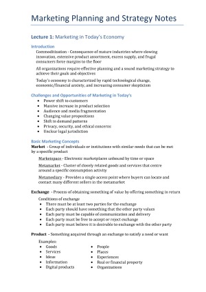 Excellent Marketing Planning and Strategy Exam Notes