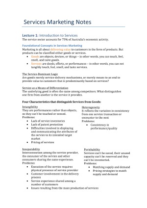 All lecture content and examinable material including: - Introduction to Services - Customer Decision Making Processes and Employees - Managing the Physical Process of Blueprinting - Pricing - Customer Satisfaction, Service Quality & Service Standards - Service Failure and Recovery - Customer Loyalty and Retention - International Services Marketing - Customer Service - Integrated Marketing Communications and Digital Marketing - Service Branding (extra)