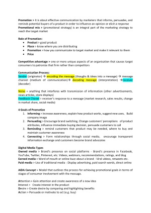Chapter 15 - Marketing Communications Chapter 16 - Advertising, Public Relations, and Sales Promotion Chapter 18 - Social Media and Marketing