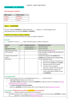 There is no doubt that equity is one of the hardest law courses you will have to do during your law degree. I used these notes to receive an overall Distinction Mark (84 overall) in Equity as well as a HD in the mid-semester assignment (mid-sem mark of 88). These notes have been comprehensively put together in a template format and are based on the substantive and policy topics covered in Equity and Trusts. My notes are all COLOUR CODED and NEATLY ORGANISED into different subsections, tables and headings. They also have MINI-PRACTISE QUESTIONS, DIAGRAMS and PICTURES integrated into the notes. In these notes, I've scaffolded a TEMPLATE that can be used in both the mid-sem and final exam problem question. The scaffold contains the issues, rule (law) and then possible ways to apply the law (ie. applying the facts of the case). I have included blank spaces where it is appropriate to apply the facts. There is also a summary of ALL policy issues covered in the course as well as some essay format templates on key areas (ie. sentencing) which appear every year. Topics included: - Creation of trust - Formalities of trust - Certainties for trust to exist - Trustee powers and duties - Defences to breaches - Indemnification - Assignment - Fiduciaries - Express Trusts - Remedies - Following / tracing - Priorities - Remedies - Resulting trusts - Constructive trusts - Bars to relief I hope these notes will be as useful to you as they were for me in Equity and Trusts. Having notes COLOUR CODED and NEATLY ORGANISED was a real asset in a time pressured exam.