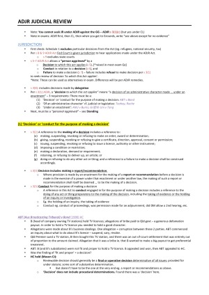 Topics covered: (A) MERITS REVIEW - Jurisdiction - Standing - Reasons - Correct and Preferable Decision (B) JUDICIAL REVIEW - Jurisdiction - Standing - Reasons - Grounds of Judicial Review - Remedies - Privative Clauses