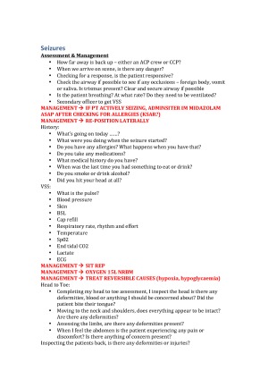 These notes were my OSCE preparation notes. It includes a script-like following with everything from pain assessment,GCS and management reasoning. They have added interventions throughout and include detailed pathophysiology and management criteria. The topics covered are APO, anaphylaxis, asthma, autonomic dysreflexia, CVA, COPD, sepsis and seizures. Good luck and enjoy :)
