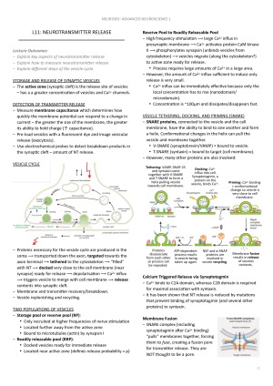 File was too big so there are two parts. -- Comprehensive notes on all 30 lectures. General topics: 1. Membrane Mechanisms, Development and Differentiation 2. Synaptic Physiology and Plasticity 3. Sensory Systems 4. Motor and Integrative Systems 5. Aging, Injury and Repair