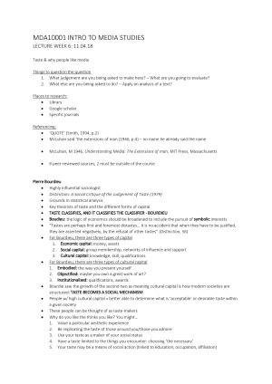 MDA10001 Intro to Media Studies - ALL LECTURE NOTES