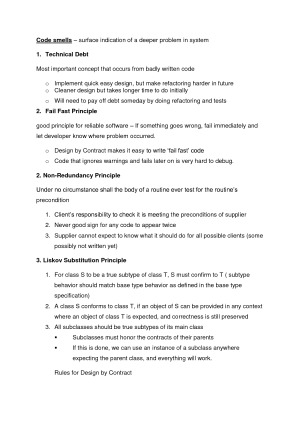 Full Set of Notes for FIT2099 OOD Unit. Note structure 1. Java Fundamentals 2. Design by Contract 3. What does a Design look like? 4. Abstraction in OO Design 5. Code Smells & Refactoring ++ Extra content including ALL code design principles and code smells required for the unit Mindmap created which effectively summarizes the whole unit (USEFUL FOR EXAM).