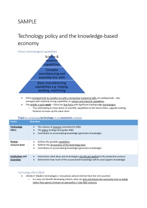 All topic, all weeks. Have elaborated on key points that are a little more confusing, but not overkill. I used these notes for the finals - you can probably just study off these (includes all lecture material + anything the lecturer said was important but skipped out on + key tutorial work that is tested) Topics Covered: W1: Introduction W2: The Socialist Era) W3: Economic Transition: strategy, process and achievements W4: Population, Labor Markets, and Human Capital W5: The Rural Economy W6: Reform and Restructuring in the Corporate Sector W7: Fiscal, Monetary, and Exchange Rate Policies W8: Financial System W9: International Trade and Foreign Investment W10: Technology Policy and the Knowledge-based Economy W11: Springboard Perspective and Linkage-Leverage-Learning Theory W12: Strategic Asset Seeking Activities and Chinese Firms' Internationalization