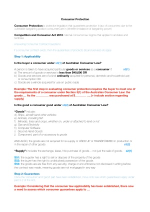 These notes summarise the topics assessable in the final exam for BTF1010 Topics include: Consumer Law Tort Law - Negligence Law of Business Organisations *Includes sample answer structures for potential questions