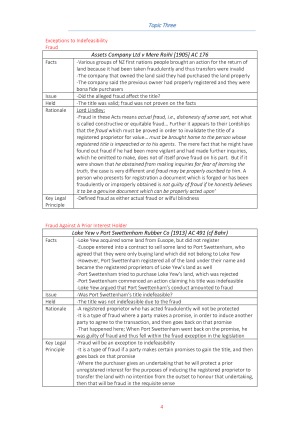 Exam notes created in Trimester 2 2018 for LAW5018 Advanced Property Law (Monash JD). These summaries are designed to give a clear outline of critical facts, what was held, the rationale of the decision and the key legal principle established. They also note the court, legal citation, and the name of the judge(s) involved in the decision. These Notes Include: -The Torrens System and Indefeasibility -Scope of Indefeasibility -Exceptions to Indefeasibility (Including Fraud) -Co-Ownership -Equitable Interests and Trusts -Unregistered Interests (Caveats and Priority Notices) -Priority Disputes -Mortgages Note: For the best preview of the notes, view the 'preview' on a non-mobile device. Disclaimer: The accuracy of these notes is not guaranteed