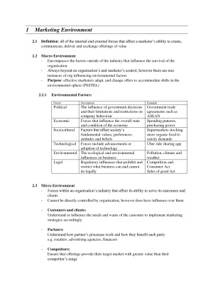 HD+ notes only thing I looked at before exams Topic List: 1. Introduction 2. Marketing environment 3. Marketing research 4. Buyer behaviour 5. Segmentation, targeting, positioning 6. Product decisions 7. Pricing decisions 8. Places decisions 9. Services, extended marketing mix