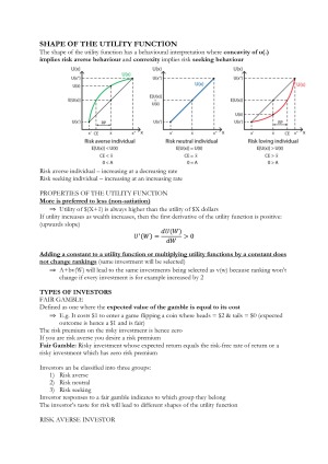 Comprehensive notes including lecture slides and tutorial notes. Includes diagrams and worked examples. Contents include expected utility, prospect theory, heuristics & biases, kellybetting, overconfidence, the cross section of expected returns, disposition effect & attention & the media.