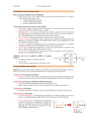 Complete notes (Mid Term Exam and Final Exam), which includes lecture summaries that have been been supplemented with required readings. INFS1000 Topics Covered in Notes: 1. Introduction to Information Systems 2. Business Processes 3. Competitive Advantage 4. Databases and Information 5. Data (ERD) Modelling 6. Ethics 7. Business Process Management 8. BPMN Modelling 9. Process Improvement 10. E-Business and Web 11. Business Intelligence 12. Collaboration and Social Media Please note there are only 12 topics, as the final lecture was a recap. Also, note that in the notes topics 7 and 8 have been combined because there was a lot of overlap.