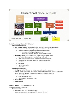 PSYC3331 Health Psychology Comprehensive Lecture notes weeks 1-5 Including topics: 1. What is health psychology 2. Models of health behaviour 3. Stress & illness + stress & coping 4. Obesity: causes and consequences 5. Diet, nutrition, and exercise