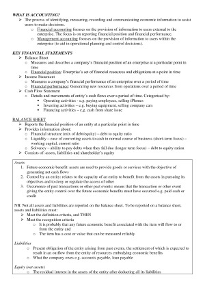 Comprehensive notes on the entire ACCT1501 course from SEM 1 2018. Received a HD, 87. COVERS ALL TOPICS INCLUDING: Introduction to Financial Accounting Measuring and Evaluating Financial Position and Financial Performance The Double Entry System Record-Keeping Accrual Accounting Adjustments Internal Control and Cash Accounts Receivable and Further Record-Keeping Introduction to Inventory and Non-Current Assets Financial Reporting Principles, Accounting Standards and Auditing Financial Statement Analysis Management Accounting: Introduction, Cost Concepts, and CVP Analysis