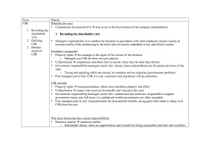 Full course content of 12 weeks including case studies includes: Lecture 1: Introduction Lecture 2:CSR 1. Revisiting the shareholder view 2. Defining CSR 3. Broader issues of CSR Lecture 3: Ethical Reasoning Traditional Theories Contemporary Theories Limitations Lecture 4: Ethical decision making How do we make ethical decisions 1. Ethical decision making model 2. Personal factors affecting ethical decision making 3. Situational factors affecting ethical decision making Lecture 5:The Ethics of Self-Interest 1. Is greed good? What is the ethical position of egoism 2. Arguments and evidence critiquing the assumption of psychological egoism in academia The Business case for BE Lecture 6: Critical Perspectives 1. Critical views of CSR 2. The law 3. New imaginings of the corporation Lecture 7: Environmental Issues: 1. Identifying environmental issues 2. Climate change 3. Why aren’t we acting? 4. Actions: Mitigation and adaption 5. Sustainable business Lecture 8: Consumer Issues I 1. Micro Issues 2. Marketers’ and consumers’ rights and responsibilities 3. Power and vulnerability 4. Consumer vulnerability 5. Marketing to children Lecture 9: Consumer Issues II 1. Criticisms of marketing 2. Criticisms of advertising 3. Advertising regulation 4. Sexualisation in advertising 5. Obesity Lecture 10: Employee Issues 1. Best places to work: values and purpose 2. Sweatshops and modern slavery 3. Job security 4. Other issues Lecture 11: Government Issues 1. The business and government relationship 2. Corporate political activity Lecture 12: Conclusion 1. Practicing business ethics 2. Positioning your personal impact 3. Exam review