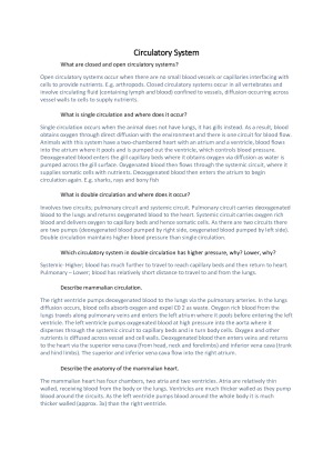Full notes from lectures 1-32 Full Organ Systems Circulatory Haematology and Immune Lymphatic Respiratory Urinary Nervous and Sensory Endocrine and Homeostasis Sexual Reproduction Protozoan and Invertebrates Parasites Chordates Fish Reptiles and Amphibians Birds Mammals 1-2 Thank you in advance. Your contribution helps me buy my textbooks!!