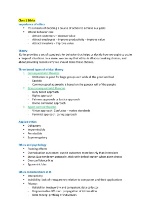 Here is my personal summary for all the key points needed in the Mid-term exam, including: - Class 1 Ethics - Class 2 Structure of Financial Information - Class 3 Accounting and Valuation - Class 4 Using Financing Information to Measure Value - Class 5 Accounting Quality - Class 6 IT systems, decision making and firm value - Class 7 IT Governance and Ethical Considerations