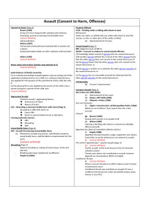 These notes are based on the course textbook (Criminal Laws- Materials & Commentary 6th ed by Brown, Farrier, McNamara, Grewcock & Schwartz). As well as comments made by Leah and Helen in classes. The notes are short and concise and was easy for me to navigate during my exam, rather than rummaging through 50 pages. It has everything you need for the final exam. :) Topics Include: - Assault (Consent to harm, Offences) - Sexual Assault - Homicide - Overview of NSW Drug Laws - Drug Policies