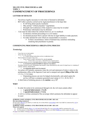 By using these MLL391 notes, I achieved a score of 87 in the exam! These concise, thorough and complete notes for MLL391 include complete summary of: prescribed textbook; case summaries; relevant legislation. Covering all topics in the unit, these materials could essentially be used as a replacement to the prescribed textbook, while being more concise, easy to read, and less time consuming. These MLL391 notes will be a fantastic supplement to your studies, and a vital resource come exam time. These are a complete summary of the MLL391 lectures, textbook, cases, legislation and topic guides. A COMPLETE SET OF MLL391 NOTES. TOPICS COVERED: TOPIC 1: INTRODUCTION TO OUR CIVIL JUSTICE SYSTEM TOPIC 2: THE VICTORIAN COURT HIERARCHY TOPIC 3: COMMENCEMENT OF PROCEEDINGS TOPIC 4: SERVICE OF PROCESS TOPIC 5: APPEARANCE TOPIC 6: JOINDER OF PARTIES TOPIC 7: PLEADINGS TOPIC 8: SUMMARY DISPOSITION TOPIC 9: AMENDMENT TOPIC 10: DISCOVERY TOPIC 11: COSTS TOPIC 12: THE TRIAL TOPIC 14: ALTERNATIVE DISPUTE RESOLUTION