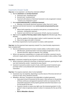 Very succinct, easy to follow answer guides for the following topics: - Adverse possession - Easements - Estates - Leases - Mortgages - Restrictive covenants Set out in a step-by-step format that is very useful for scenario style questions. Includes contents page and page numbers. I used these in my exam and they helped me achieve a 77 (Distinction) with minimal study.