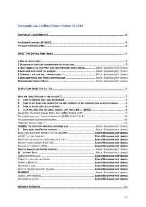 Comprehensive Corp 2 exam notes Full index Corp Governance Director Duties and ethics Statutory Duties Member remedies Accounts and audit Fundraising Insolvency Safe harbour provisions Receivership Voluntary administration Winding up PPSA