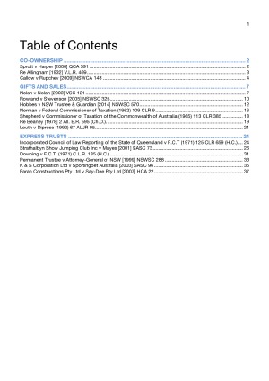 Comprehensive case summaries for the required reading cases concerning co-ownership, gifts and sales and express trusts. Covers issues, facts, findings, results and principles for each case.