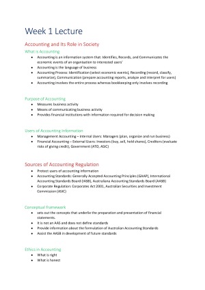 Accounting and Its Role in Society Sources of Accounting Regulation Concept of Business and Business Entity Business Structures Concept of Cost Planning and Budgeting Accounting Equation Cash vs Accrual Accounting Goods and Services Tax (GST) Accounting Recording Process Balance Day Adjustments Income Statement Balance Sheet Statement of Cash Flows Financial Analysis Liquidity Analysis Ratio Analysis