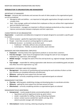 84 SCORE - MGMT1001 NOTES - COMPLETE