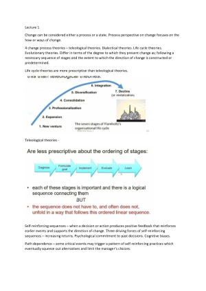 Change Management Notes + Assignment Tips Topic 1: Managing Change as a Process Topic 2: Recognising the Need and Diagnosing Change Topic 3: Planning for Change Topic 4: Considering and Selecting Interventions Topic 5: Implementing and Reviewing Change Topic 6: Sustaining Change Topic 7: Leading Change Topic 8: Managing Politics and Stakeholders Topic 9: Communicating Change Topic 10: Motivating Others and Reducing Resistance
