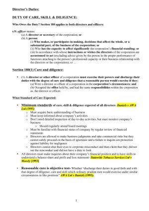 Highly detailed, accurate and organised Corporate Law notes. Cases are highlighted and legislation is bolded. Also includes diagram for visual learning. Using these MLL221 Corporate Law notes I received a HD score of 80. Topics covered: 1 Regulatory framework 2 Registration and its effects 3 Types of companies 4 Constitution and replaceable rules 5 The company's relations with outsiders 6 Promoters and pre-registration contracts 7 Fundraising 8 Share capital 9 Membership 10 Dividends 11 Debentures and loan capital 12 Directors 13 Corporate governance and duties of directors 14 Shareholders' meetings 17 Members' remedies 21 ASIC investigation powers 22 Corporate insolvency 23 Receivership 24 Voluntary administration 25 Liquidation