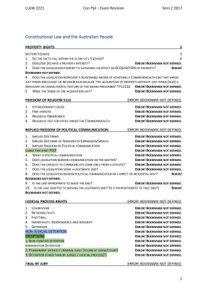 Comprehensive notes covering all topics - property rights - freedom of religion - implied freedom of political communication - Judicial Process etc. Road maps Relevant case law