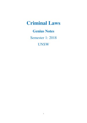 Essential and comprehensive notes for the criminal laws problem question! All of Chuan's diagrams and flowcharts have been incorporated into the notes, and all of the information is referenced back to the most current version of the textbook. Please note that this is only for the problem question and not the policy question in the exam. Enjoy :)