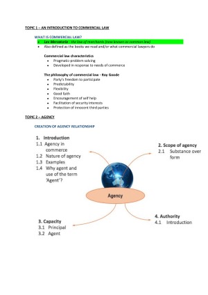 LIST OF TOPICS: 1. An Introduction to Commercial Law 2. Agency 3. Doctrine of Undisclosed Principal 4. Sale of Goods 5. Transfer of Property 6. Implied Terms/ Goods Act 7. ACL/ Unconscionable Conduct 8. Unfair Contract Terms Regime 9. PPSI