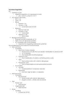 Lecture and Tutorial Content - Weeks 1-13 Easy to follow and divided by topic :) Also lots of pictures Topics - Acid Base Regulation - Disturbances of Acid Base Balance - Short Term Regulation of Blood Pressure - Long Term Control of Blood Pressure - Hypertension - Exercise: Muscle Metabolism - Exercise: The Cardiovascular System under stress - Endocrinology: How hormones control cell function - Potassium Homeostasis - Stress hormones - Obesity Epidemic and Energy Balance - Homeostatic Control of Energy Balance - Hedonic Eating - Genetics and Body Weight - Protein and Energy Balance - Human Microbiota in the Anthropocene - Addiction and Substance Abuse