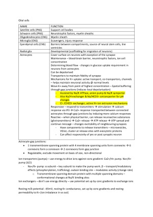 These notes have absolutely every bit of information you need to achieve an H1!! Used for MSTs and the final exam. Week 1-12 Topics: Cellular components of the brain Modulation of membrane potential Action potentials: Axon Initial Segment and the Nodes of Ranvier Cellular basis of sensory transduction -mechanoreceptors Special sensory transduction mechanisms Measurement of neuronal activity Enteric Nervous System Neuropsychiatry and gut Focus on disease: Gut microbiome Introduction to metabotropic receptors Modulation of neuronal function by metabotropic receptors Presynaptic processes - VGCC, vesicular release, presynaptic proteins Presynaptic processes - axonal transport and structural neuronal polarity The post-synaptic density Synaptic strength Maintenance of the neuron and synapse- neurotrophins Mathematical modelling of neurons Autonomic nervous system Viscerosensory afferents Synaptic /Sensory processing in the NTS Neural stem cells and neurogenesis Neurogenesis in the ANS Respiratory system: rhythm generation, network organisation Modulation of respiratory rhythm Respiratory sympathetic coupling