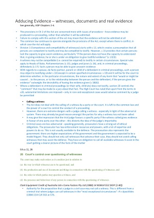 All content for the semester - including readings from the latest edition of Kumar, Odgers and Peden, Uniform Evidence Law: Commentary & Materials (2018, 6th ed), seminar notes and legislation which has been indicated in green font for ease of reference. Over 127 pages of content and 80,000 words. Topics included are: - Introduction - Proof Part 1 - Adducing Evidence (witnesses, documents and real evidence) - Relevance - Discretion - Hearsay - Credibility - Admissions and Self-Incrimination - Opinion - Character - Tendency - Proof Part 2