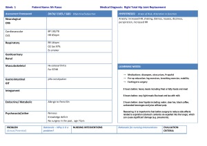 Weekly Care Plans covering patient scenarios for: - Peri-procedure management - Medication management - Pain - Altered breathing - Wound assessment - Diabetes - Fluid and electrolyte imbalance