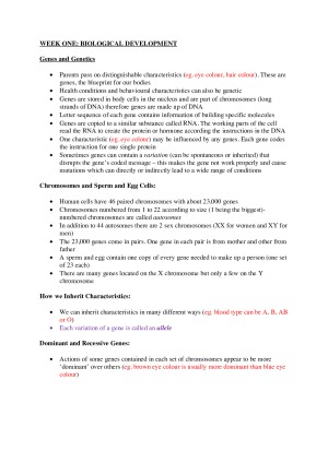 Notes were created using the weekly reading resources provided for the unit: Topics include: - Biological Development - Emotional Development - Social Development - Cognitive Development - Moral Development - ADHD - Autism Spectrum Disorder (ASD) - Motor Development