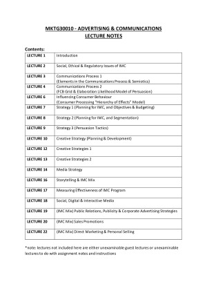 (H1) Advertising & Promotions (MKTG30010) Lecture Notes