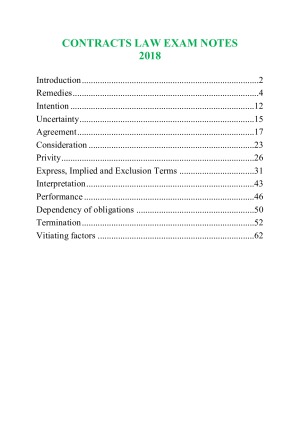 This set of highly comprehensive notes details all content in the update 2018 course of 3 units. These notes have been compiled using all lecture, seminar and textbook content. These notes will help refine your knowledge throughout the semester and be vital during exams. Everything is explained in a logical, easy to follow and well structured guide. (These notes will also be listed under Law 1510 - The new Contracts course code)