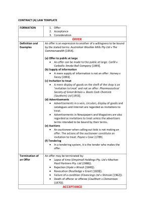 List of Topics Covered includes, Formation; Intention to Create Legal Relations; Consideration; Equitable Estoppel; Certainty and Completeness; Express Terms; Implied Terms; Construction of Contractual Terms; Discharge by Performance; Discharge by Agreement; Discharge by Breach; Discharge by Frustration. Readings Covered include the text book, 'Principles of Australian Contract Law' by John Googley, Peter Radan and Ilija Vickonvich. From Week 1 to 12.