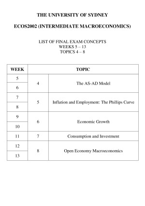 Very concise and succinct list of ALL concepts tested in the finals. Organised in a neat table format so its really really easy to read. Helped me a great deal during the last few days leading up to my finals! Includes: Weeks 5-13 content Topics 4-8