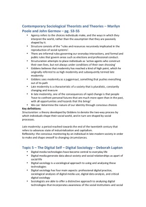 key points from each chapter for each topic as well as key definitions from the textbook "Public Sociology, an introduction to Australian Society"