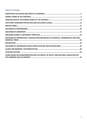 Contract Law notes that contain all of the examinable content not included in the assessment. This includes a combination of lecture notes, textbook reading, and case summaries Included topics include: privity of contract, express terms, exclusion clauses, implied terms, discharge by performance, discharge by agreement, discharge when a contingent term fails, discharge by termination, discharge by unforeseen events, remedies, vitiating factors