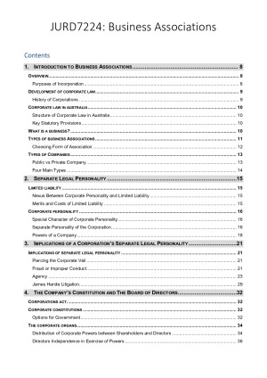 Comprehensive notes for class preparation, includes case summaries and summaries of theoretical articles for mid-semester essay.